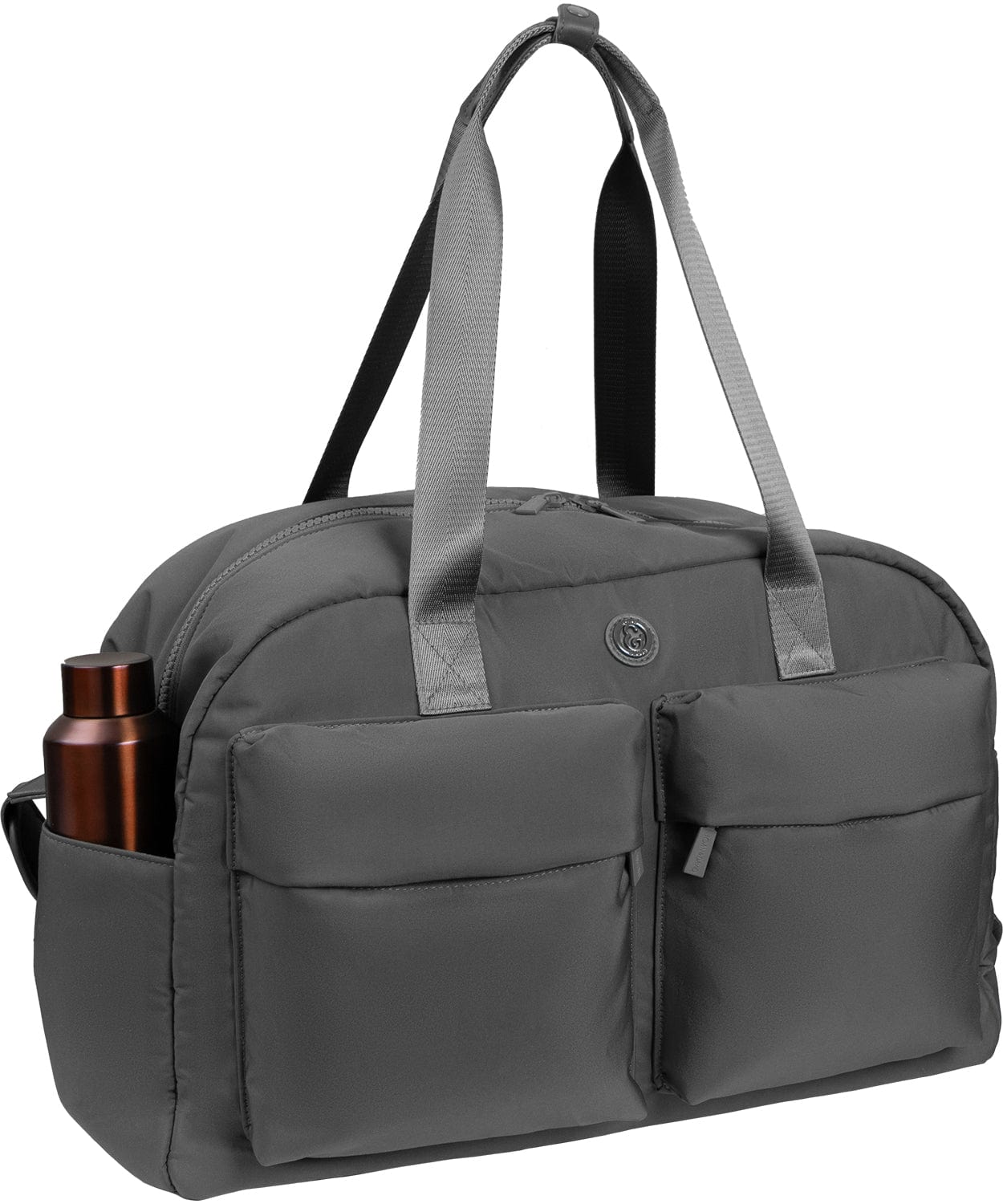 Featuring two front zip pockets, gusset slip pockets, and a spacious interior, this weekender duffle provides everything you need to keep your essentials organized and easily accessible. Whether you're hitting the gym, traveling for a weekend, or just need a reliable carry-all for daily use, this bag offers both the functionality and style you’ve been looking for.